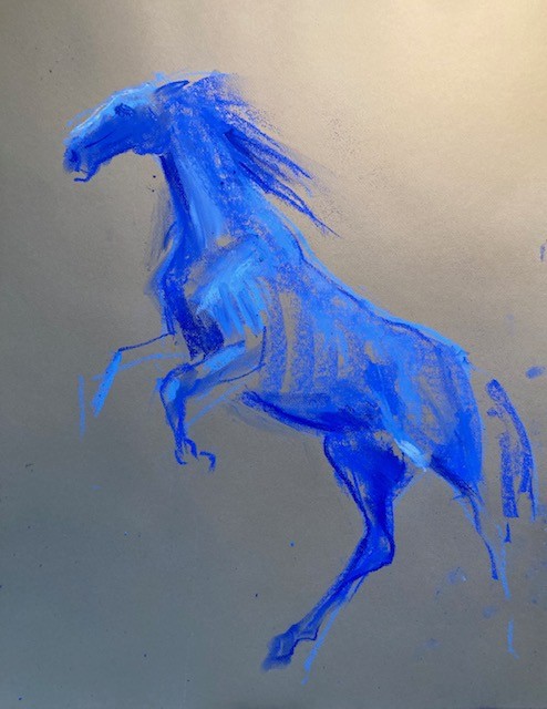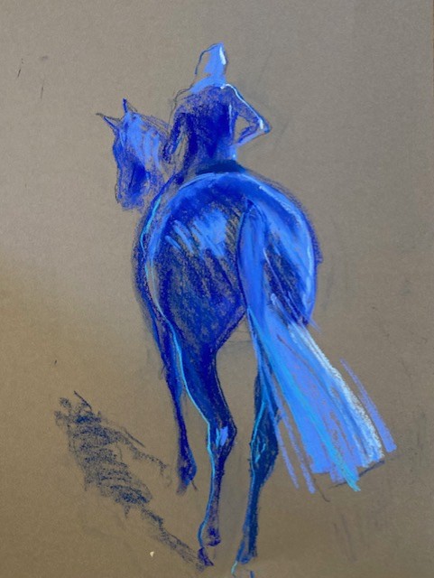 De retour à l’atelier, sur la côte normande, elle restitue la majesté du cheval en montrant l’invisible : la légèreté équestre, l’impulsion, l’engagement.