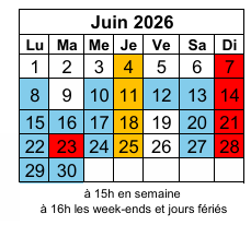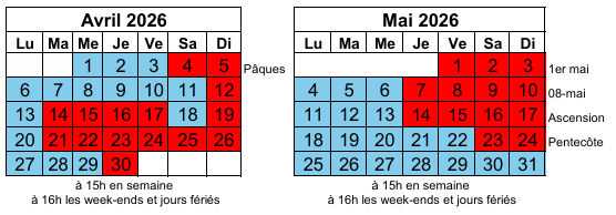 A 15h en semaine et 16h les week-ends et jours fériés.
